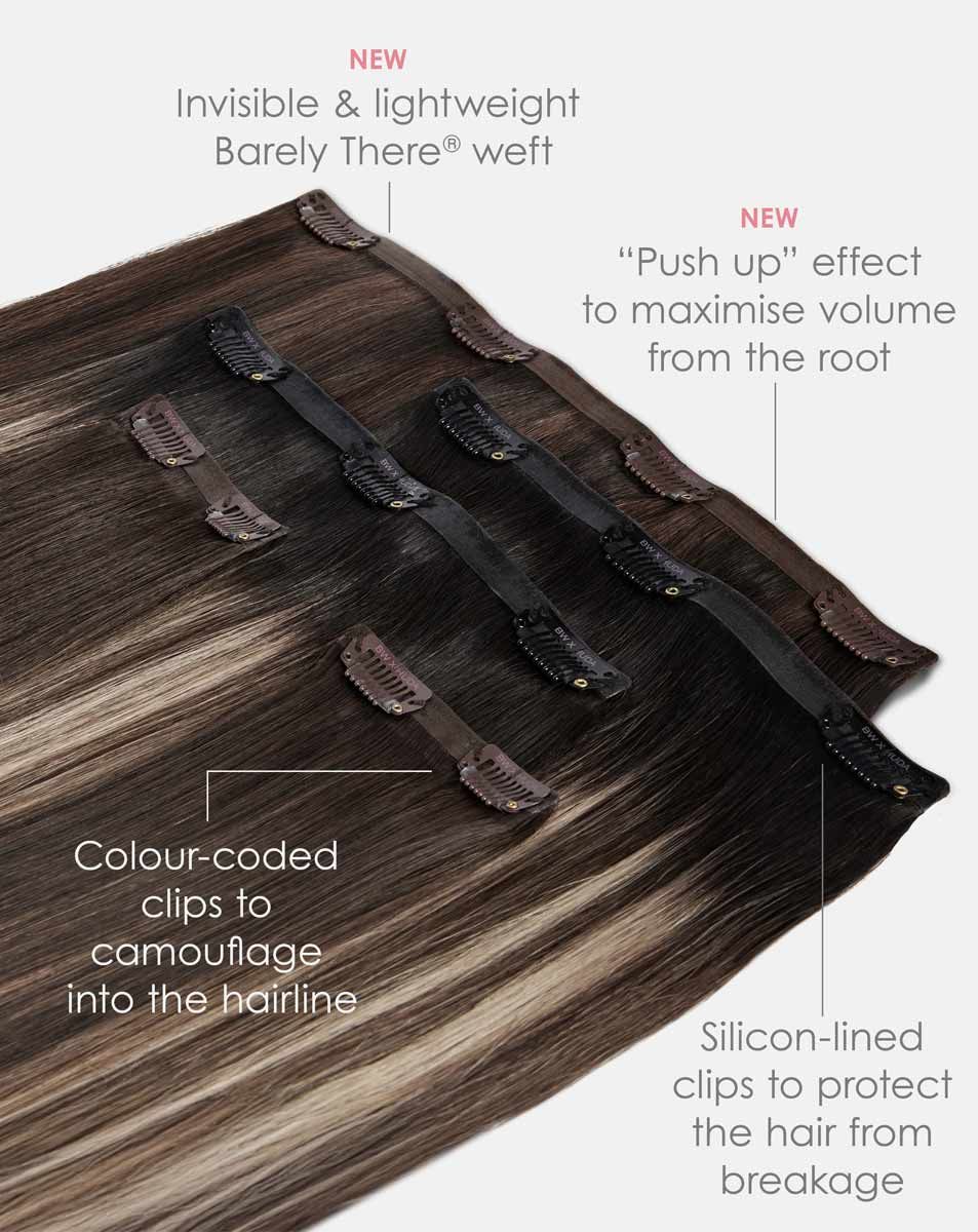 خيار متعدد الاستخدامات لكثافة ومزج متوازنين، مثالي لإضافة كثافة ولون على كامل شعرك أو تحسين مجموعتك الحالية. يتضمن خصلتين بثلاث مشابك. كل قطعة مصنوعة من شعر بشري ريمي 100%، ومتوفرة بطولين: 46 غرام (18 بوصة) و52 غرام (20 بوصة).